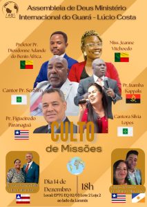 No domingo, 14/12/2025, a Igreja Assembleia de Deus do Campo da Sede Internacional do Guará, sob a liderança do Pastor Presidente Rev. Aaron e do Pastor Local Moisés Brito, Igreja congregação Lúcio Costa Df., Realizou uma cruzada evangelística com o tema ‘Missão para Todos’, baseada em Marcos 16:15: ‘Ide por todo o mundo e pregai o evangelho a toda criatura’.